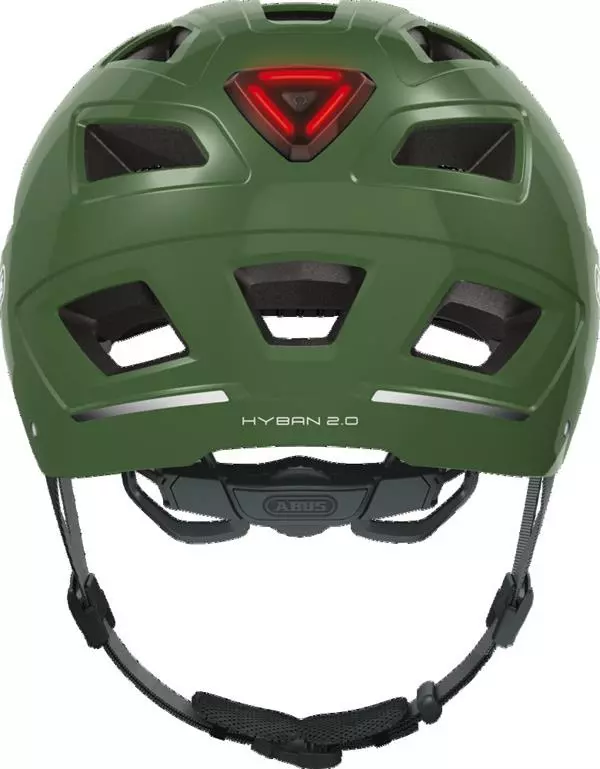 Abus Hyban 2.0 Jade Green er en urban cityhjelm med bløde stropper og puder for optimal komfort. Kombinationen af en hård robust yderskal med store ventilationshuller er perfekt til citykørsel. cykelhjelmen har som ekstra sikkerhed rød lygte monteret bagpå. Selve lygten er monteret i en gummimembran som du prikker ud af hjelmen med en finger, når du skal skifte batteri. Du får simpel hagespænde med pudebeskytter. Denne gang har Abus endelig lavet et hagespændesystem som sikrer at hagespændet ikke glider af og bliver væk. Zoom Ace Urban skruespænde i nakken for optimal bespænding. Der er plads til hestehale, da spændet kan trækkes ned. 13 luftindtag samt fluenet foran og aftagelig skygge.