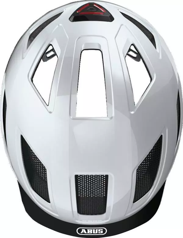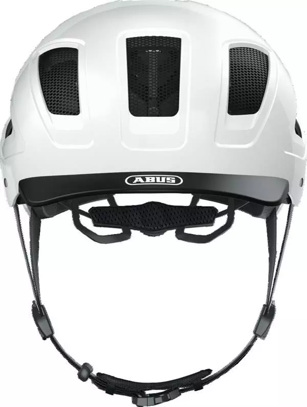 Abus Hyban 2.0 Polar White er en urban cityhjelm med bløde stropper og puder for optimal komfort. Kombinationen af en hård robust yderskal med store ventilationshuller er perfekt til citykørsel. cykelhjelmen har som ekstra sikkerhed rød lygte monteret bagpå. Selve lygten er monteret i en gummimembran som du prikker ud af hjelmen med en finger, når du skal skifte batteri. Du får simpel hagespænde med pudebeskytter. Denne gang har Abus endelig lavet et hagespændesystem som sikrer at hagespændet ikke glider af og bliver væk. Zoom Ace Urban skruespænde i nakken for optimal bespænding. Der er plads til hestehale, da spændet kan trækkes ned. 13 luftindtag samt fluenet foran og aftagelig skygge.