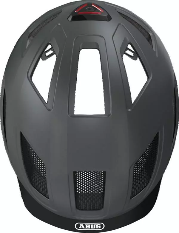 Abus Hyban 2.0 titan er en urban cityhjelm med bløde stropper og puder for optimal komfort. Kombinationen af en hård robust yderskal med store ventilationshuller er perfekt til citykørsel. cykelhjelmen har som ekstra sikkerhed rød lygte monteret bagpå. Selve lygten er monteret i en gummimembran som du prikker ud af hjelmen med en finger, når du skal skifte batteri. Du får simpel hagespænde med pudebeskytter. Denne gang har Abus endelig lavet et hagespændesystem som sikrer at hagespændet ikke glider af og bliver væk. Zoom Ace Urban skruespænde i nakken for optimal bespænding. Der er plads til hestehale, da spændet kan trækkes ned. 13 luftindtag samt fluenet foran og aftagelig skygge.