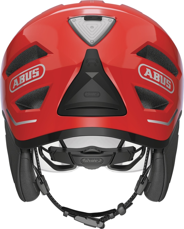 Abus pedelec 2.0 ACE Blaze Red er NTA 8776 godkendt. Ekstrem flot storby cykelhjelm med super pasform og forbedret sikkerhed. Du får klart visir (du kan tilkøbe røgfarvet), aftagelige ørevarmere og integreret regnovertræk som er monteret i hjelmen bagpå i et lukket rum. Du får højt placeret USB genopladelig sikkerhedslygte bagpå samt insektnet foran og Fidlock magnetspænde. Hjelmen tilpasses med Abus Zoom Ace spændesystem. Der er også aftagelige ørevarmere med.