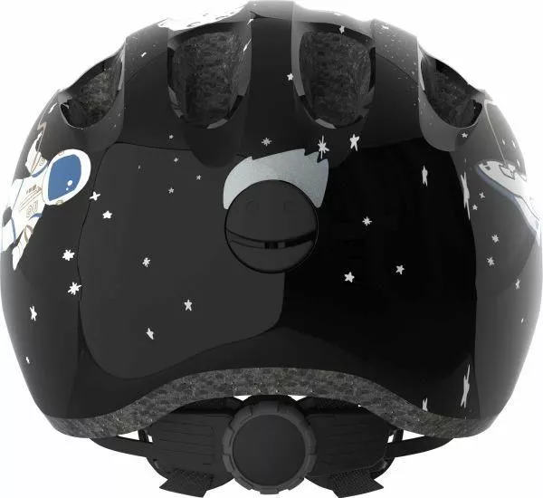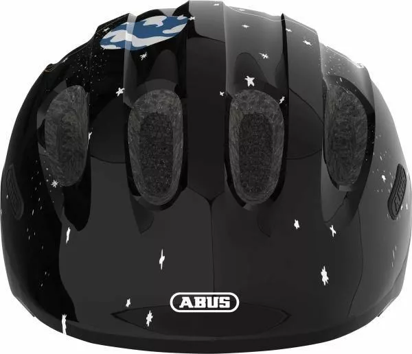 Abus smiley 2.0 Black Space. Den populære Abus Smiley cykelhjelm er kommet i en 2.0 udgave med nyt design og forøget sikkerhed. Abus Smiley 2.0 giver bedre beskyttelse af nakke og tindinger. Helt klart det oplagte valg til de mindste i trafikken. Godkendt og sikker børne cykelhjelm fra ABUS – Perfekt som “barnets første hjelm”. Denne hjelm anbefaler vi til helt små børn, der sidder i barnesæde eller trailer på cyklen.