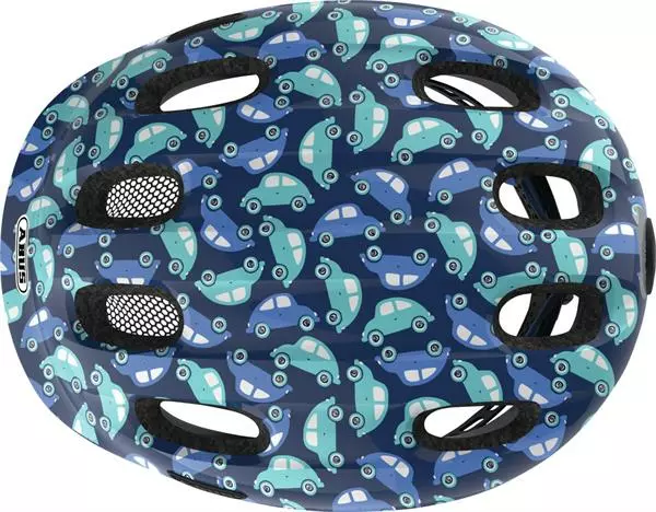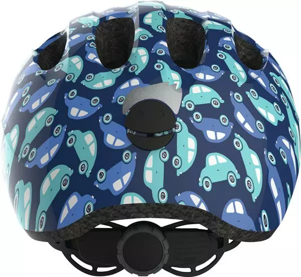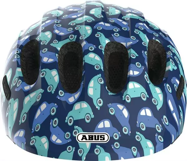 Abus smiley 2.0 Blue Car. Den populære Abus Smiley cykelhjelm er kommet i en 2.0 udgave med nyt design og forøget sikkerhed. Abus Smiley 2.0 giver bedre beskyttelse af nakke og tindinger. Helt klart det oplagte valg til de mindste i trafikken. Godkendt og sikker børne cykelhjelm fra ABUS – Perfekt som “barnets første hjelm”. Denne hjelm anbefaler vi til helt små børn, der sidder i barnesæde eller trailer på cyklen.