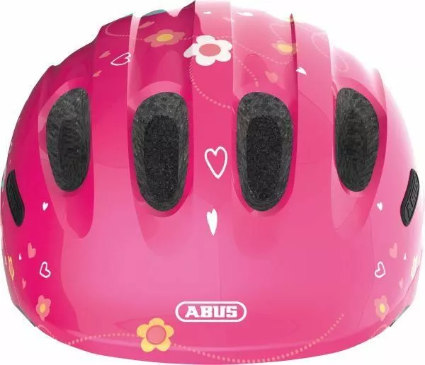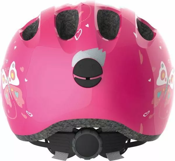 Abus smiley 2.0 Pink Butterfly. Den populære Abus Smiley cykelhjelm er kommet i en 2.0 udgave med nyt design og forøget sikkerhed. Abus Smiley 2.0 giver bedre beskyttelse af nakke og tindinger. Helt klart det oplagte valg til de mindste i trafikken. Godkendt og sikker børne cykelhjelm fra ABUS – Perfekt som “barnets første hjelm”. Denne hjelm anbefaler vi til helt små børn, der sidder i barnesæde eller trailer på cyklen.