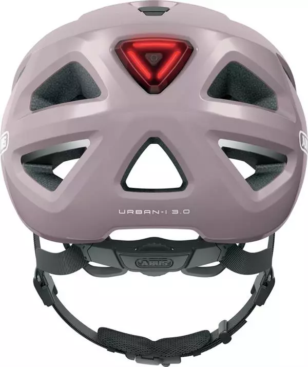 Abus Urban-I 3.0 Mellow Mauve med LED lys. 3. udgave af den populære by cykelhjelm til kvinder, mænd, børn og gamle. Ekstrem flot cykelhjelm i City look med super pasform. Du får en nyudviklet LED lygte bagpå hjelmen. Afmonteres nemt ved batteriskift ved at presse den ud indefra. Selve lygten og batteriet er monteret i en vandtæt gummimanchet. Du får zoom Ace Urban skruespænde system i nakken som har en stor drejeknap. Er også velegnet til hestehale. Fidlock magnetspænde ved hagen og insektnet i de forreste ventilationskanaler.