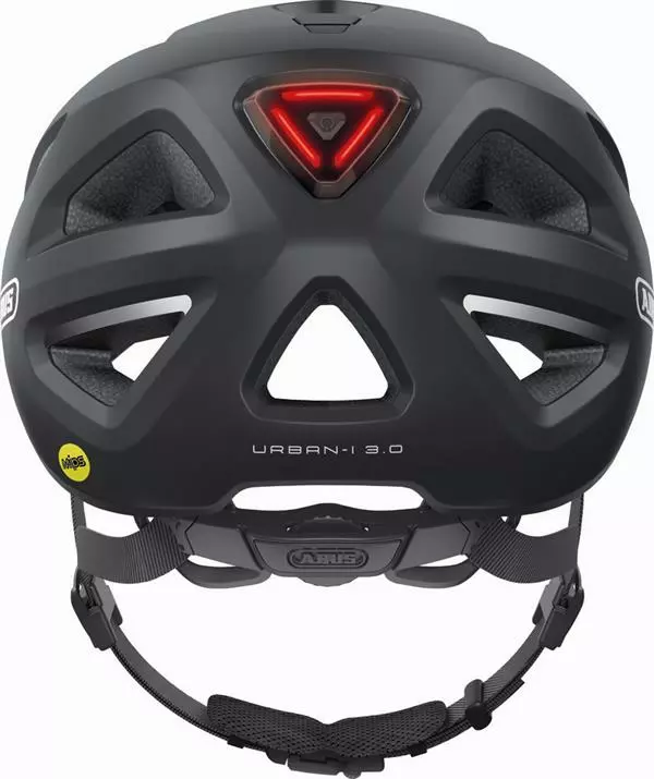 Abus Urban-I 3.0 Mips Velvet Black med LED lys. 3. udgave af den populære by cykelhjelm til kvinder, mænd, børn og gamle. Ekstrem flot cykelhjelm i City look med super pasform. Du får en nyudviklet LED lygte bagpå hjelmen. Afmonteres nemt ved batteriskift ved at presse den ud indefra. Selve lygten og batteriet er monteret i en vandtæt gummimanchet. Du får zoom Ace Urban skruespænde system i nakken som har en stor drejeknap. Er også velegnet til hestehale. Fidlock magnetspænde ved hagen og insektnet i de forreste ventilationskanaler. Med model 3.0 er der 4 størrelser således at flere børn og personer med stort hoved op til 65 cm også kan bruge 3.0 udgaven. Det er fedt.