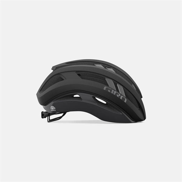 Giro Aries Spherical Matte Black Mips. Cykelhjelm til landevej. Designet specielt til landevejscykling og udstyret med avanceret teknologi og funktioner, der giver en høj grad af sikkerhed og komfort til cykelryttere. En af de vigtigste teknologier i cykelhjelmen er Spherical Mips teknologien, som består af to lag af EPS-skum, der er adskilt af en lavfriktionsskal, der kan rotere og bevæge sig uafhængigt af hinanden, hvilket reducerer risikoen for hjernerystelse ved rotationsstyrt. In-Mold konstruktionen gør landevejshjelmen lettere og mere holdbar.