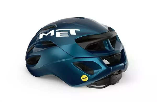 Met Rivale Mips Teal Blue Metallic Glossy er en kompakt og strømlinet sportshjelm. Met har haft aerohjelmen i vindtunnel og samarbejdet med Grand Tour hold om at optimere hjelmen. Met har lavet tests der påviser at Met Rivale sparer rytteren for 3 watt ved 50 km’t. Det giver en fordel på 1 sekund i forhold til konkurrenternes aerohjelme. Du får skruespænde i nakken og klemmefri hagespænde. Hjelmen er produceret med inmold teknologien som gør den lettere og designet flottere. Hjelmen er udstyret med håndvaskbare puder og solbrilleholder.