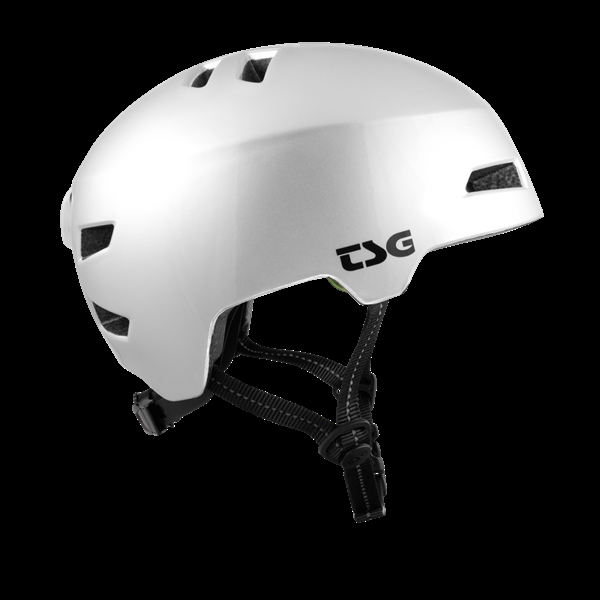 TSG Status Special Makeup Satin Sterling LED Lys. En letvægts skaterhjelm / cykelhjelm med skruespænde i nakken for optimal tilpasning. Derudover er der paddings, så hjelmen sidder helt tæt til hovedet. Du får ventilation igennem 13 aerodynamiske huller samt indvendige ventilationskanaler. Sikkerheden er i top med rød diode sikkerhedslygte bag på hjelmen og reflektive stropper.